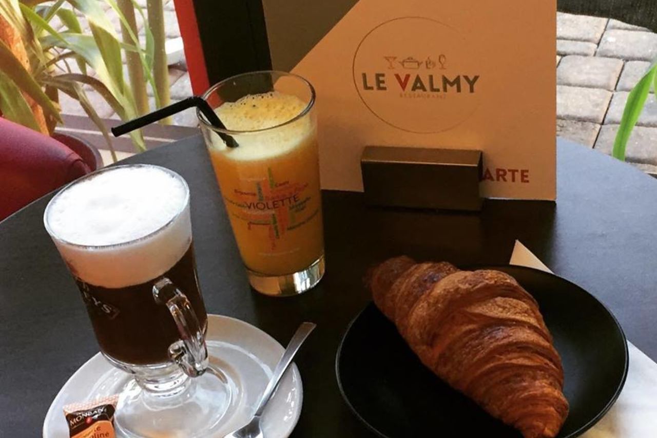Petit déjeuner au Valmy pour bien démarrer la journée! - Trésor de Chocolat - Orange Pressée - Croissant